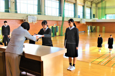 令和6年11月14日(木)リモートによる全校朝礼で、表彰伝達が行われました。