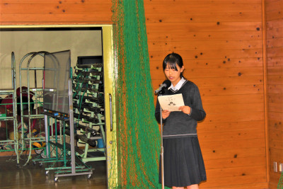 令和7年12月11日(木)放送による全校朝礼で、交通安全委員会の発表がありました。